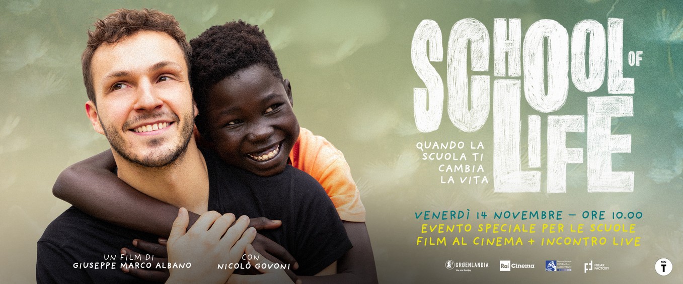 School of Life è un documentario di Giuseppe Marco Albano, prodotto da Groenlandia con Rai Cinema, distribuito da Freak Factory. Racconta la missione di Nicolò Govoni e della sua ONG Still I Rise: offrire un’istruzione gratuita e d’eccellenza ai bambini più vulnerabili nei campi profughi e nelle zone di conflitto.